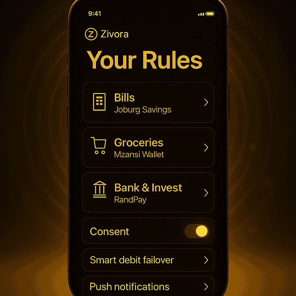 Zivora auto-splits payments across all your South African bank accounts in real time.